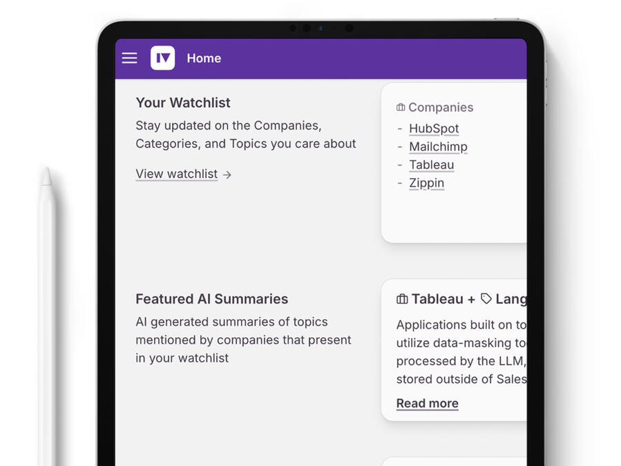 IV.AI Console is a market intelligence platform of over 10,000 AI companies designed to demystify the AI sector and enable in-depth research of all the AI offerings out there.